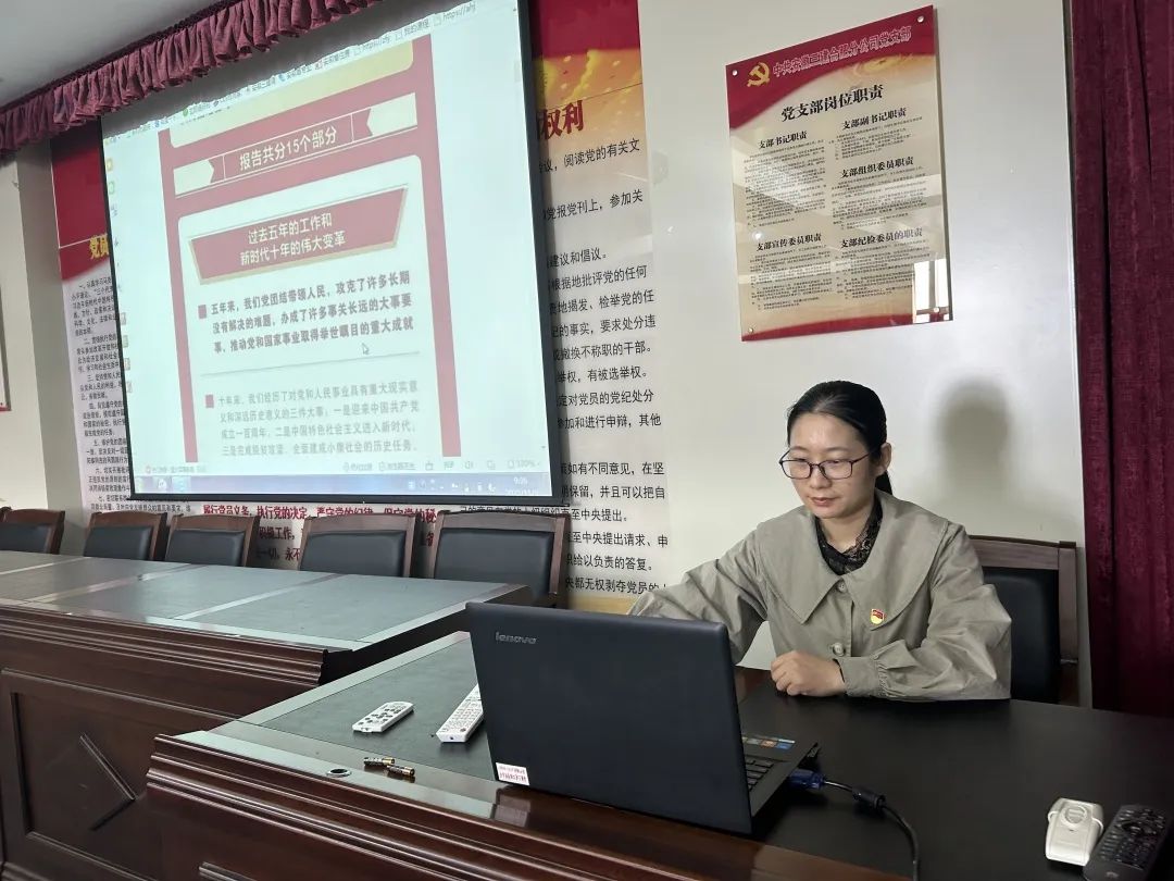 為深入學習貫徹黨的二十大精神,在機關(guān)迅速掀起學習貫徹的熱潮,10月31日,總支組織“云端黨課”學習宣貫黨的二十大精神。黨支部副書記陽海英以《踔厲奮發(fā),勇毅前行——聚焦中國共產(chǎn)黨第二十次代表大會》為主題,詳細解讀二十大報告提出的十五個部分的內(nèi)容,結(jié)合機關(guān)實際工作對二十大報告進行了深入淺出的解讀,認真研讀黨的二十大報告和黨章,領(lǐng)悟黨的二十大提出的新思想、新論斷,深刻領(lǐng)會報告精神實質(zhì)。