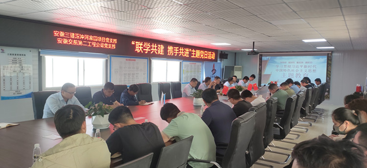 為扎實推進學習貫徹習近平新時代中國特色社會主義思想主題教育,進一步提升黨建與項目生產(chǎn)經(jīng)營工作深度融合,5月23日下午,安徽三建潭沖河家園項目黨支部聯(lián)合安徽交航第二工程公司黨支部在共同施工的潭沖河家園項目開展“聯(lián)學共建 攜手共進”主題黨日活動。安徽三建四公司、交航二公司黨政負責人及項目黨員、部分項目骨干30余人參加活動。