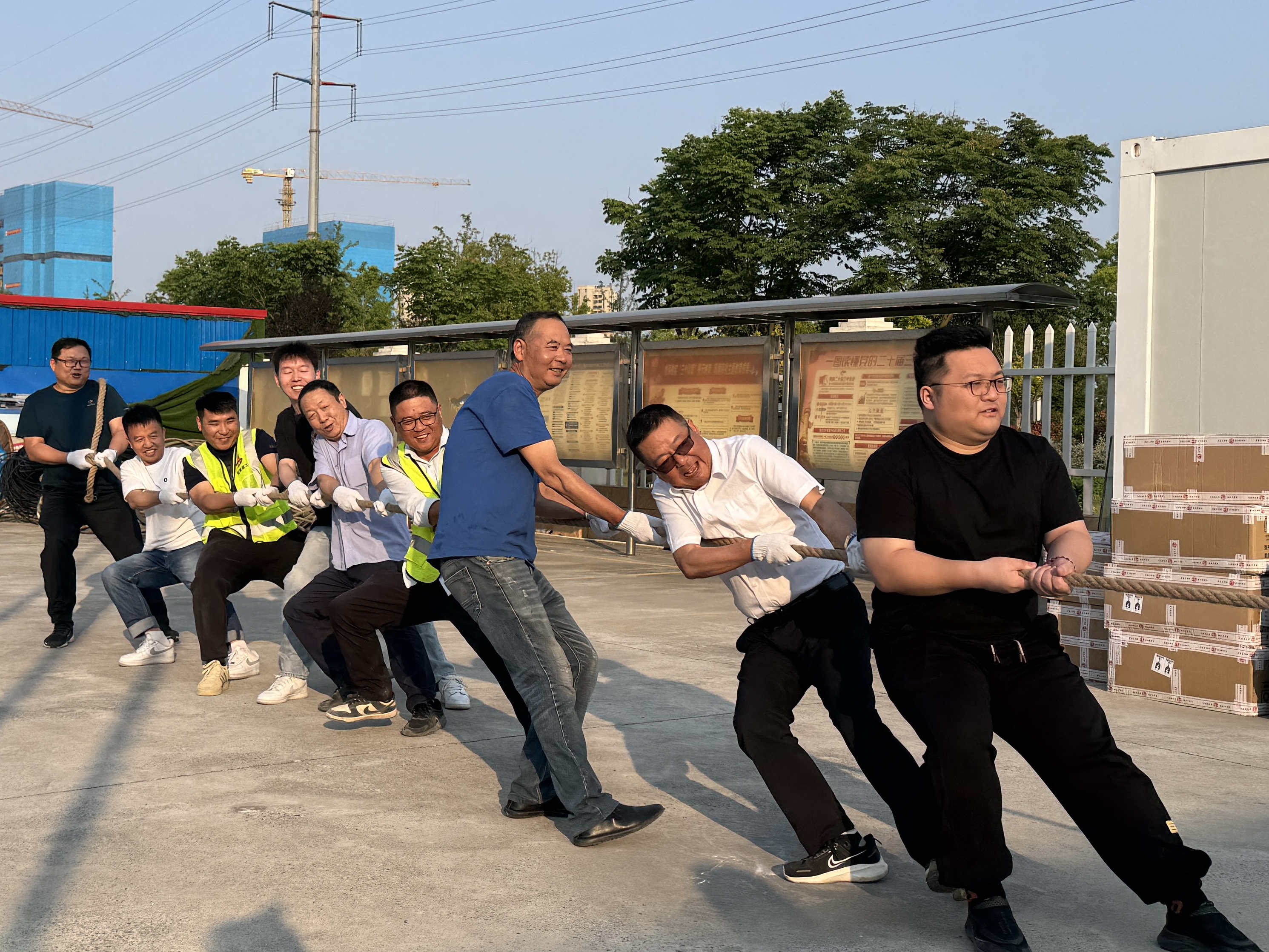 R23014地塊項(xiàng)目部精心策劃并組織全體參建人員開展了一場(chǎng)“粽情端午 力拔山河” 主題拔河比賽。賽場(chǎng)上,隊(duì)員們個(gè)個(gè)精神抖擻、齊心協(xié)力、奮力拼搏,此起彼伏的加油聲響徹整個(gè)賽場(chǎng),場(chǎng)面熱鬧非凡,充分彰顯出項(xiàng)目同志昂揚(yáng)向上的朝氣與活力。同時(shí),項(xiàng)目部還貼心地準(zhǔn)備粽子、香囊等飽含節(jié)日韻味的禮物,讓那些日夜奮戰(zhàn)在一線的職工們深切感受到來(lái)自項(xiàng)目部大家庭的暖心關(guān)懷。
